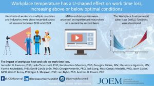 Abstract: Objective: We investigated the impact of workplace heat and cold on work time loss. Methods: Field experiments in different industrial sectors were conducted in multiple countries across all seasons between 2016 and 2024. Hundreds of workers were video-recorded and their full shifts (n = 603) were analyzed on a second-by-second basis (n = 16,065,501 sec). Environmental data were recorded using portable weather stations. The Workplace Environmental Labor Loss (WELL) functions were developed to describe work time loss due to workplace temperature. Results: The WELL functions revealed a U-shaped relationship whereby the least work time loss is observed at 18 °C (64 °F), and increases for every degree above or below this optimal temperature. Conclusions: The WELL functions quantify the impact of workplace temperature on work time loss, extending to temperatures previously believed to be unaffected.