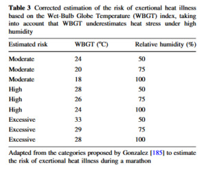 Racinais S, Alonso JM, Coutts AJ, Flouris AD, Girard O, González-Alonso J, Hausswirth C, Jay O, Lee JK, Mitchell N, Nassis GP, Nybo L, Pluim BM, Roelands B, Sawka MN, Wingo J, Périard JD. Consensus Recommendations on Training and Competing in the Heat. Sports Med. 2015 Jul;45(7):925-38. doi: 10.1007/s40279-015-0343-6. PMID: 26002286; PMCID: PMC4473280.