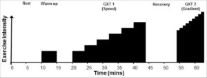 Simultaneous multiple linear regression was used to predict 5 km time, using these determinants, indicating neither GXTHOT (R2 = 0.72) nor GXTCOOL (R2 = 0.86) predicted performance in the heat as strongly has previously been reported in cool conditions. vV̇O2max was the strongest individual predictor of performance, both when assessed in GXTHOT (r = −0.83) and GXTCOOL (r = −0.90). The GXTs revealed the following correlations for individual predictors in GXTHOT; V̇O2max r = −0.7, RE r = 0.36, LT r = −0.77, LTP r = −0.78 and in GXTCOOL; V̇O2max r = −0.67, RE r = 0.62, LT r = −0.79, LTP r = −0.8. These data indicate (i) GXTHOT does not predict 5 km running performance in the heat as strongly as a GXTCOOL, (ii) as in cool conditions, vV̇O2max may best predict running performance in the heat.
